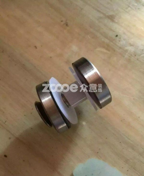 在安裝的時候,如上圖這樣的一個配件(玻璃夾)把玻璃夾住,通過五金件把玻璃與五金件固定起來后,再把五金件安裝固定到墻上。