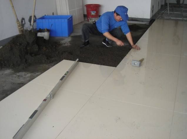砂漿使用1:2.5水泥砂漿體積比,粘接層不得低于12㎜厚,灰漿飽滿,水泥統(tǒng)一使用大廠425號(hào)水泥。800×800拋光磚或花崗石采用1:4~1:6水泥沙體積比.600*600以上(含600*600).500X500以上規(guī)格地磚采用干貼法.