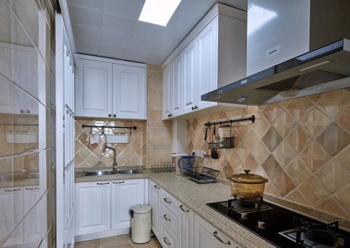 不少人埋怨廚房太小無法很好地利用,其實(shí)空間小不怕,合理地規(guī)劃一樣能打造出整潔又方便的廚房。墻地面裝修上,小廚房建議采用單一明亮的材料,米白色的墻面磚配合淺咖啡色的防滑地磚,簡單又顯空間寬敞。