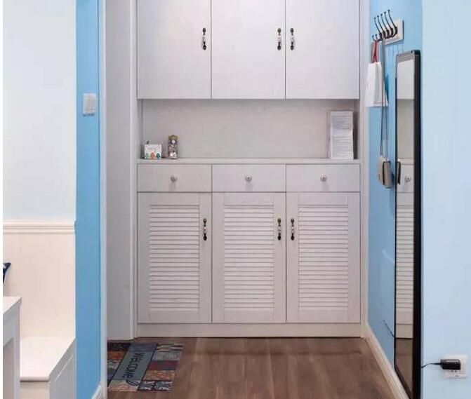 1. 在選擇玄關(guān)鞋柜的時(shí)候,可以選擇百葉門,這樣可以防臭,如果是家中有腳氣的朋友更是要選擇百葉門鞋柜。