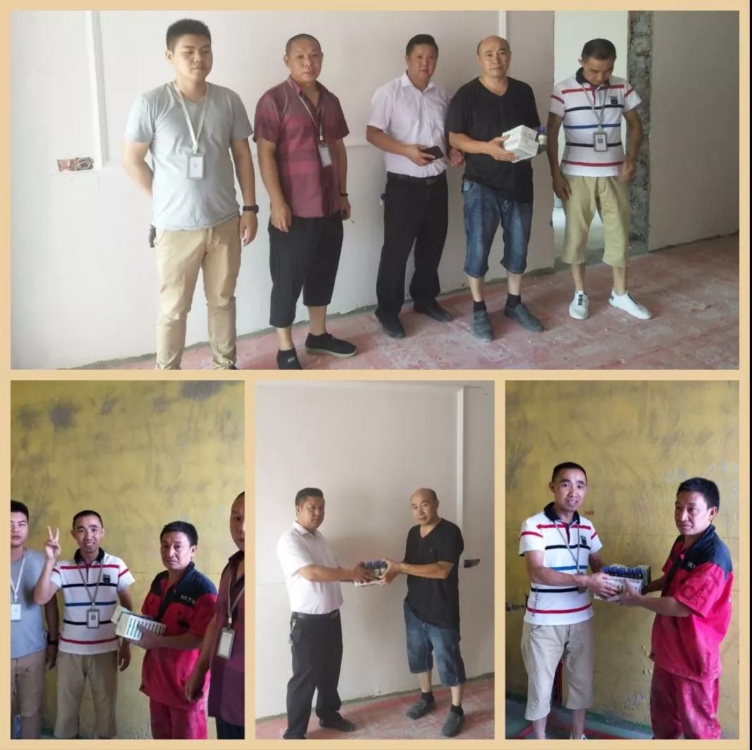 7月13日,是重慶楊家坪店每周的工巡查日,這天,工程部譚總攜工程部管理者去到各個工地上為我們現場的施工工人們貼心的送去解暑藥,以表慰問。