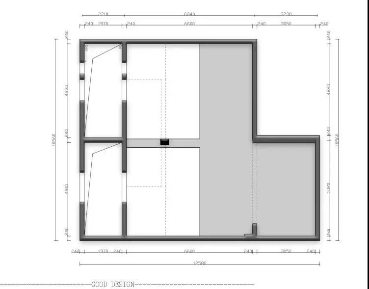 戶(hù)型優(yōu)點(diǎn):調(diào)控可利用,層高較高;承重柱較少, 可改動(dòng)大;灰色采光井可利用。