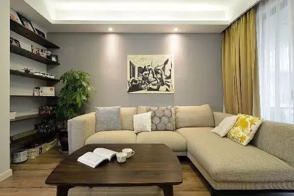 客廳,客廳里是原木的地板,搭配淺灰色的沙發(fā),深棕色的茶幾,線條簡(jiǎn)約流暢,還在沙發(fā)旁的墻面做了置物架,可以擺放一些裝飾品,實(shí)用美觀。