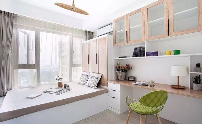 就拿小戶型來說,為了能更合理的利用有限空間,一室兩用是非常常見的。臥室+書房的設計,想要擁有這樣的臥室,榻榻米是不錯的選擇。次臥放一張榻榻米,收納能力毋庸置疑,若是再搭配一個書柜,瞬間臥室就擁有了書房功能,休息、工作兩不誤。