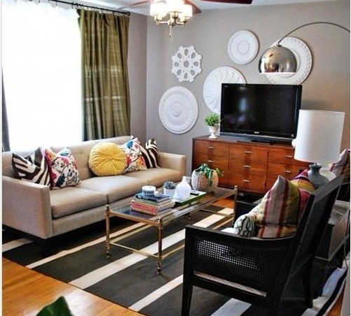 客廳電視背景墻:若是去掉背景墻的裝飾,便是以往最為傳統(tǒng)的電視背景,而石膏裝飾品的點綴,給電視背景墻予以簡單改造,不同花紋、不同大小的石膏裝飾品,錯落張貼于電視背景墻區(qū)域,使整個電視背景墻得到品質級的改觀。