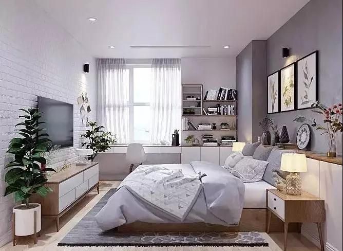 如果進門處有衛(wèi)生間或是衣帽間,面積寬裕的臥室可以將中央空調(diào)的吊頂和衣柜一起設(shè)計,更加合理的利用起空間。