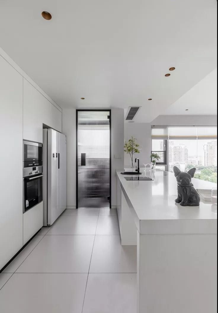 全吊頂在極簡、北歐風(fēng)格中用的比較多,做全吊頂除了可以把電線、筒燈、燈帶等隱藏起來,也便于安裝通頂大柜子,柜子的頂部能和天花板完全貼合。