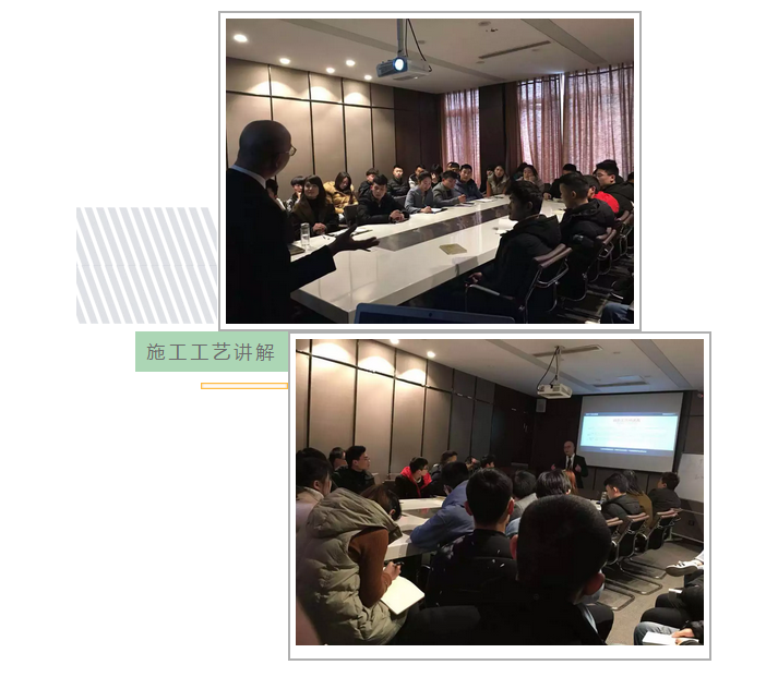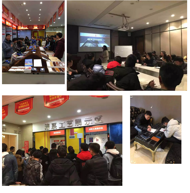 隨后付總向大家講解了佳天下整裝模式的優(yōu)勢(shì)以及與其他模式的區(qū)別;物料部經(jīng)理向大家展示了我們的材料類別、品牌等;工程部總監(jiān)李總為大家介紹了家裝施工流程和佳天下特殊的工藝技術(shù)。