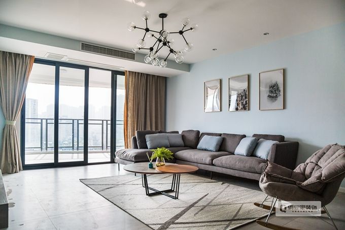 3、對于個性簡約風(fēng)格,也可以突出了混搭、多種色彩元素的氣氛,可算是現(xiàn)代簡約風(fēng)格則又進(jìn)一步理性。黑灰色的布藝沙發(fā)、幾何圓形的吊燈以及黑白色彩的沙發(fā)背景掛畫、紅的休閑桌,這樣的色彩搭配無一不體現(xiàn)了大膽的個性設(shè)計,與個性化十足!