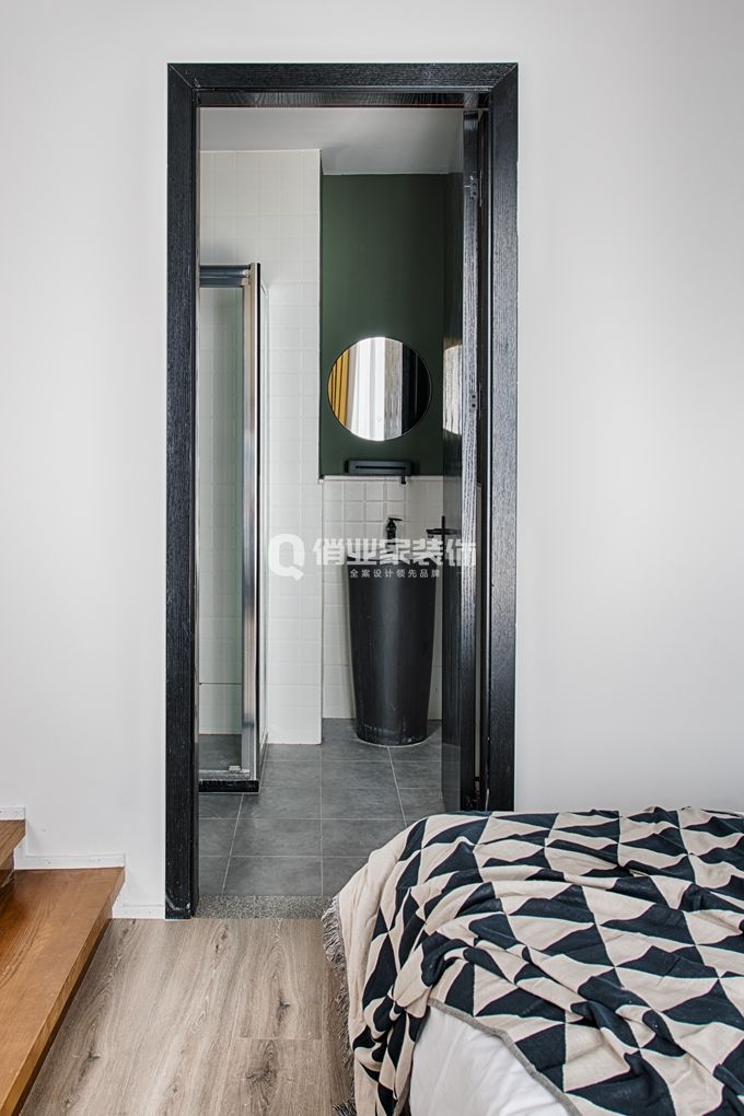 5、臥室套房3裝修:湖綠色的乳膠漆背景墻+木色飾面板,時尚與復(fù)古相結(jié)合,床頭的軟包讓舒適性直線上升,放下奔走一天的疲憊。造就當(dāng)代快節(jié)奏生活里的一點(diǎn)小愜意。