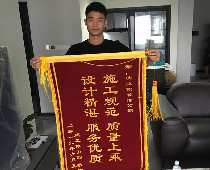 業(yè)主老師贈(zèng)俏業(yè)家裝飾工程有限公司嘉獎(jiǎng)錦旗——“施工規(guī)范,質(zhì)量上乘,設(shè)計(jì)精湛,服務(wù)優(yōu)質(zhì)”。