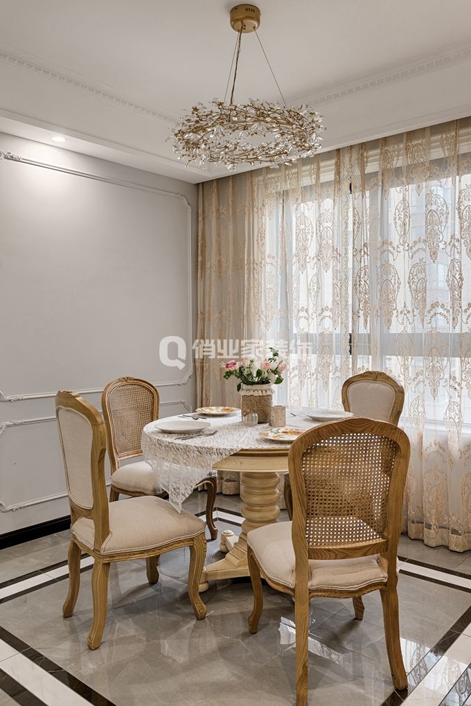 2、餐廳裝修:方中有圓,連綿不絕。地磚鋪貼出方形大氣的格局,圓形的餐桌寓意圓潤(rùn)美滿,同時(shí),特別配選法式餐桌椅,讓餐廳區(qū)域布滿鄉(xiāng)村的休閑氣息,盡管有些慵懶,可正是這樣,享受晚餐也變得更加美妙。