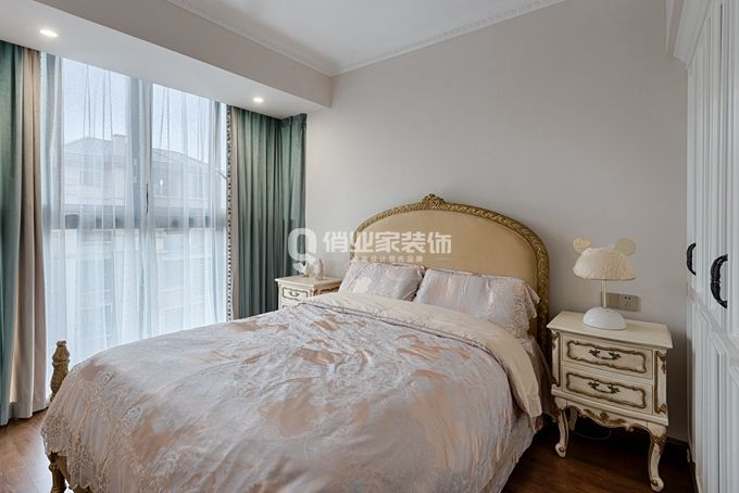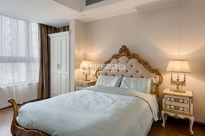 6、次臥裝修:臥室是柔和的,舒適的,擯棄復(fù)雜無(wú)用的造型,選用原汁原味的法式家具,是設(shè)計(jì)師給予居者的貼心設(shè)計(jì)。