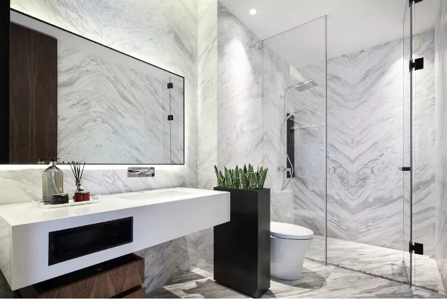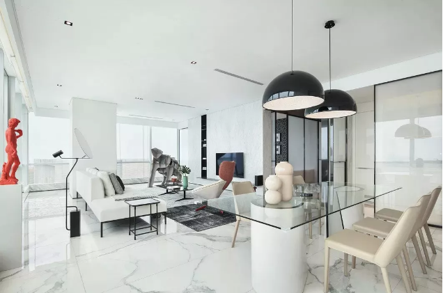 大理石客衛(wèi)時(shí)髦大氣,觸目所及的就是滿滿的奢華質(zhì)感。但在強(qiáng)調(diào)美觀性之余,也通過合理的空間比例和規(guī)劃,有效提升它的實(shí)用性