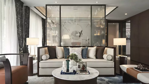 放眼望去,整個(gè)設(shè)計(jì)一改傳統(tǒng)中式的繁復(fù)與沉悶,不華麗、不搶眼,而是將新中式的沉穩(wěn)大氣注入到現(xiàn)代生活方式中,既有現(xiàn)代設(shè)計(jì)的簡(jiǎn)約,又契合東方傳統(tǒng)的古典氣韻。