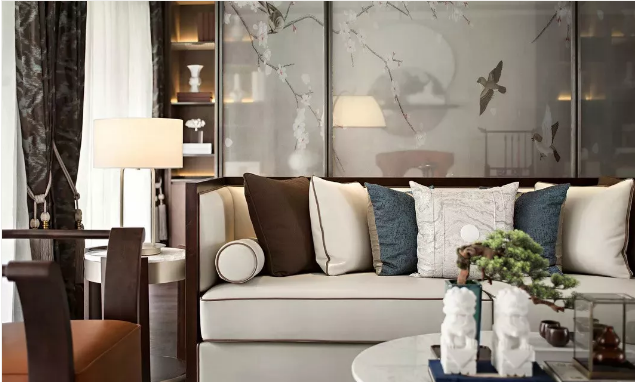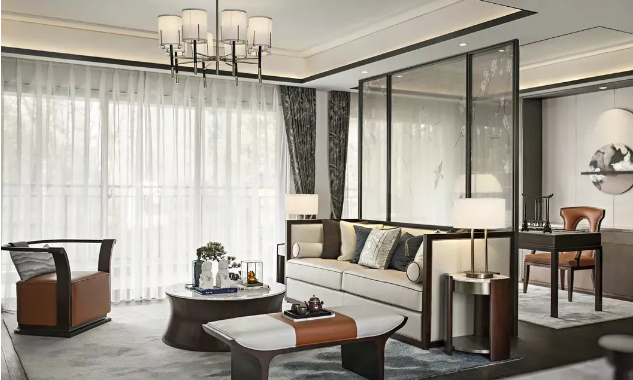 整體風(fēng)格在設(shè)計(jì)上延續(xù)了明清時(shí)期家居配飾理念,提煉了其中經(jīng)典元素并加以簡(jiǎn)化和豐富,在家具形態(tài)上更加簡(jiǎn)潔清秀,同時(shí)又打破了傳統(tǒng)中式空間布局中等級(jí)、尊卑等文化思想,空間配色上也更為輕松自然。