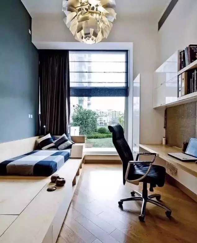 對于一些小戶型只有兩間房的家庭來說,次臥做個榻榻米地臺,真的很實用,能夠把一些換季的被褥、衣服放在榻榻米地臺內(nèi),能夠多出許多的儲物空間。重慶整裝公司小編特別建議有一個院管的業(yè)主們,可以這樣設(shè)計,既有床還有書桌,方便實用。