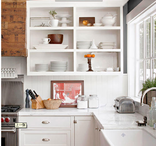 有時裝修是一樣減法,在廚房的上柜,摒棄了櫥柜門轉(zhuǎn)而選擇了開敞的設(shè)計模式,里面擺上在自己喜歡的餐具或食材,是具有煙火氣息的裝飾法。
