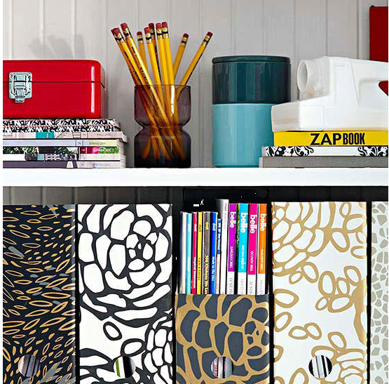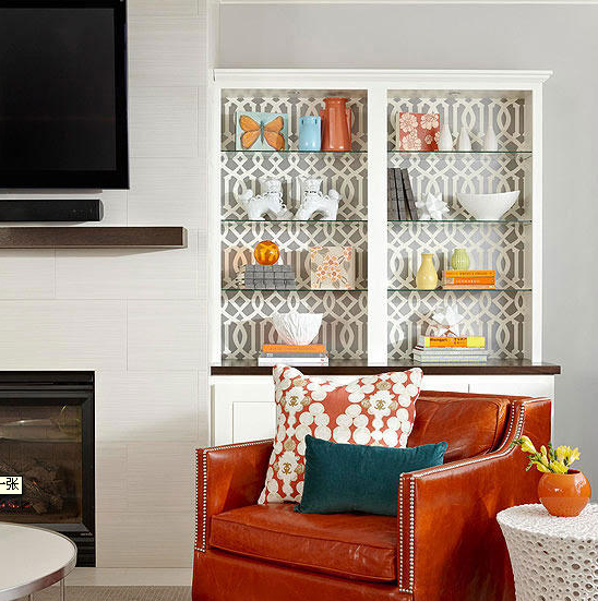 壁紙、織物等裝飾時余留下的,扔掉太可惜了,裝起來!用作書柜或者展示柜的打底,不同花紋的內(nèi)襯,也會讓人眼前一亮。